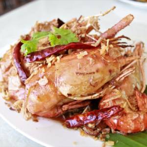 กุ้งแม่น้ำทอด ราดน้ำปลา